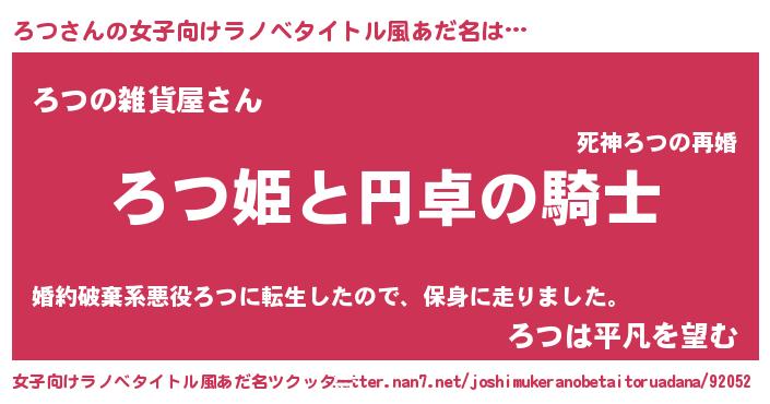 | 胡散臭い通販商品みたいなあだ名 | 『モテモテ間違いなし霊験あらたかなお札…その名も「ろつ」』 |