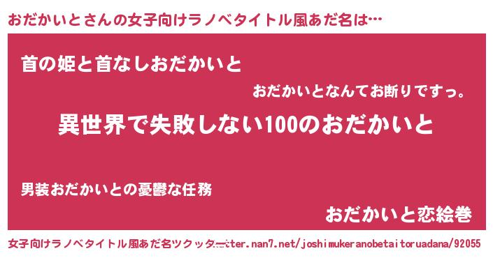 | 男性向けラノベタイトル風あだ名 | 『おだかいとという概念が存在しない退屈な世界 』 |