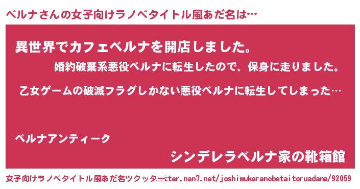 | 胡散臭い通販商品みたいなあだ名 | 『世界中を虜にした世界で10本だけ現存している希少なブランデー…その名も「ベルナ」』 |