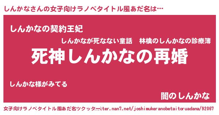| ヘコむあだ名 | 『しんかな(小並感)』『しんぷりん』 |