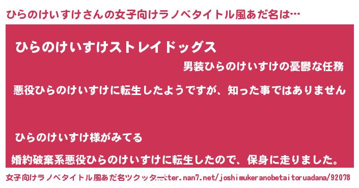 | 男性向けラノベタイトル風あだ名 | 『この素晴らしい世界にひらのけいすけを!』 |