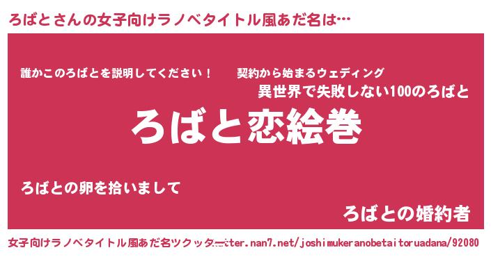 | 胡散臭い通販商品みたいなあだ名 | 『お金では代えられない隕石のかけら…その名も「ろばと」』 |