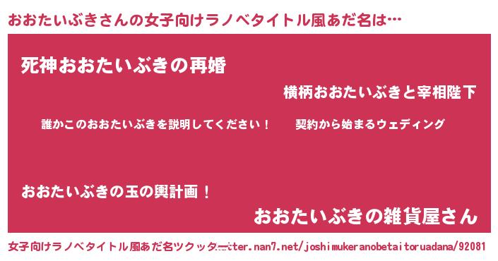 | 胡散臭い通販商品みたいなあだ名 | 『億万長者になれる霊験あらたかなお札…その名も「おおたいぶき」』 |