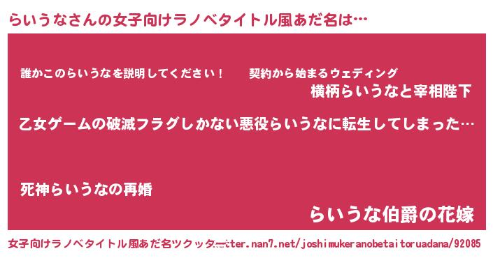 | 意味不明あだ名 | 『住所不定無職らいうな(3歳)』 |
