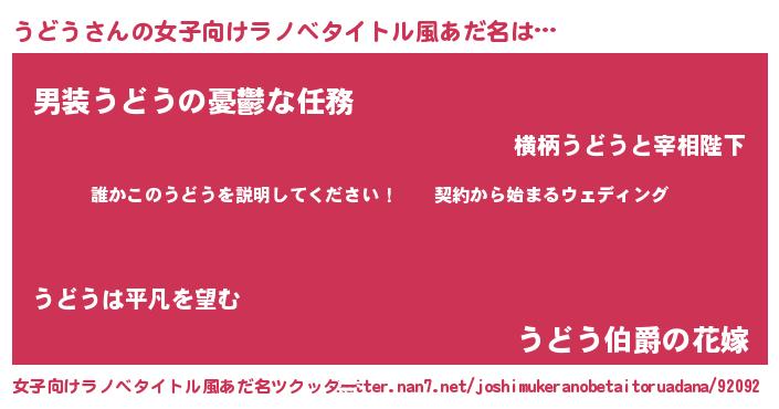 | 男性向けラノベタイトル風あだ名 | 『ウドウアートオンライン』 |