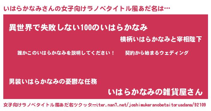 | 胡散臭い通販商品みたいなあだ名 | 『億万長者になれる霊験あらたかなお札…その名も「いはらかなみ」』 |