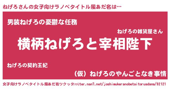 | 男性向けラノベタイトル風あだ名 | 『ねげろに滅ぼされるだけの簡単なお仕事です』 |