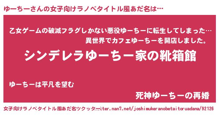 | 意味不明あだ名 | 『住所不定無職ゆーちー(98歳)』 |