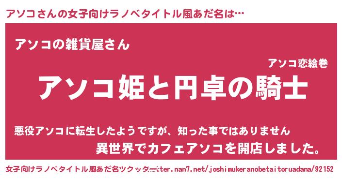 | 男性向けラノベタイトル風あだ名 | 『アソコの憂鬱』 |