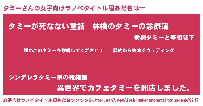 | ファンタジー風あだ名 | 『タミフェル』『ヴァルタミーナ』 |