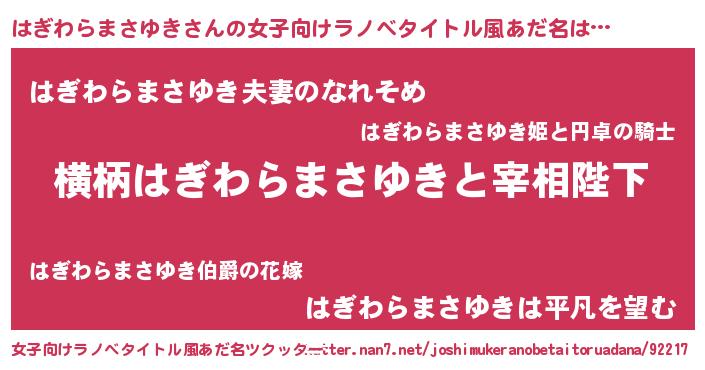 | 男性向けラノベタイトル風あだ名 | 『はぎわらまさゆきに滅ぼされるだけの簡単なお仕事です』 |