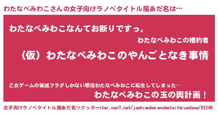| 胡散臭い通販商品みたいなあだ名 | 『必ず成功する霊験あらたかなお札…その名も「わたなべみわこ」』 |
