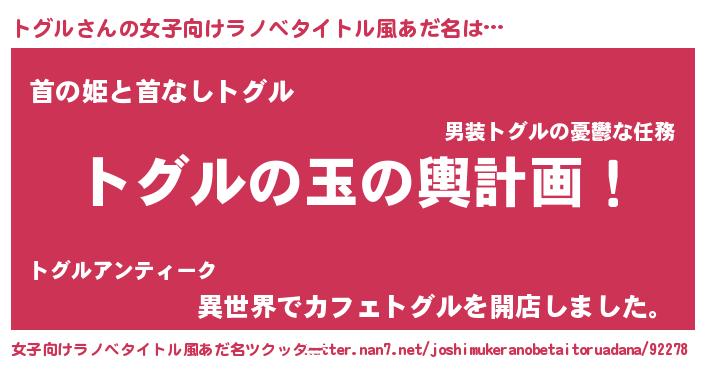 | 胡散臭い通販商品みたいなあだ名 | 『来世でも幸せになれる水素水…その名も「トグル」』 |