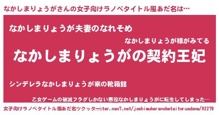 | 男性向けラノベタイトル風あだ名 | 『なかしまりょうがという概念が存在しない退屈な世界 』 |