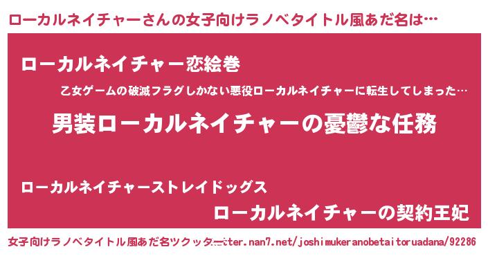 | 男性向けラノベタイトル風あだ名 | 『うちのローカルネイチャーが世界を掌握している!』 |