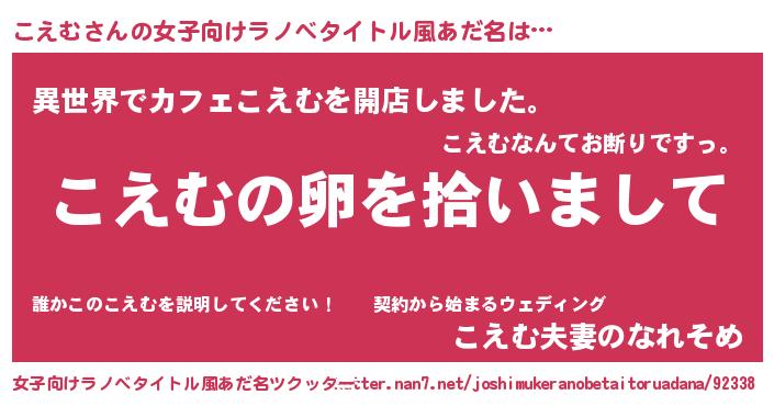 | 男性向けラノベタイトル風あだ名 | 『こえむの嫁は女の子じゃないと思った?』 |