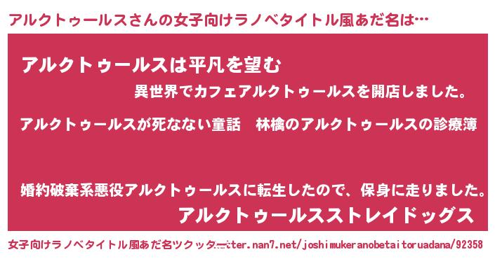 | ヘコむあだ名 | 『アル太郎』『アルクトゥールス(笑)』 |