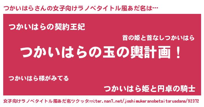 | 男性向けラノベタイトル風あだ名 | 『つかいはら~年齢イコール彼女いない歴の魔法使い~』 |