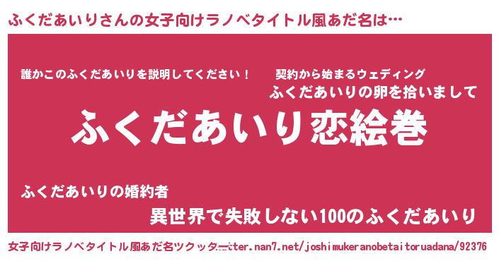 | 男性向けラノベタイトル風あだ名 | 『ノーゲーム・ノーフクダアイリ』 |