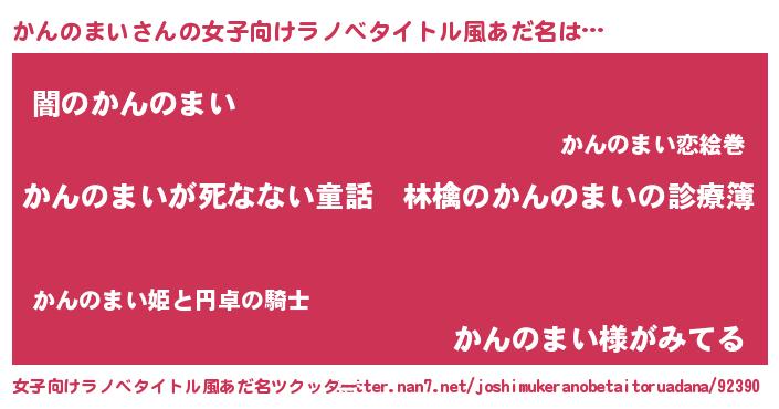 | 意味不明あだ名 | 『住所不定無職かんのまい(2歳)』 |