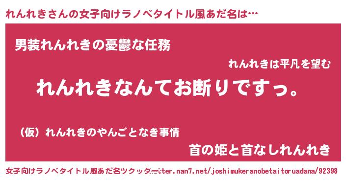 | 意味不明あだ名 | 『自称れんれき』『ペロリンれんれき』 |
