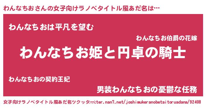 | 男性向けラノベタイトル風あだ名 | 『ワンナチオアートオンライン』 |