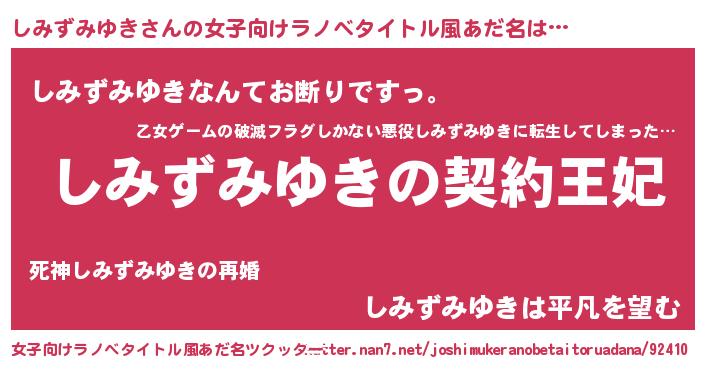 | 男性向けラノベタイトル風あだ名 | 『しみずみゆきという概念が存在しない退屈な世界 』 |