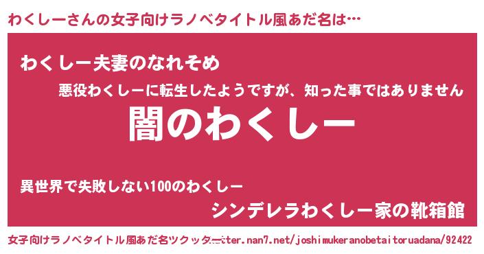 | 意味不明あだ名 | 『自称わくしー』『永久保存わくしー』 |