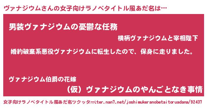 | 胡散臭い通販商品みたいなあだ名 | 『必ず成功する霊験あらたかなお札…その名も「ヴァナジウム」』 |