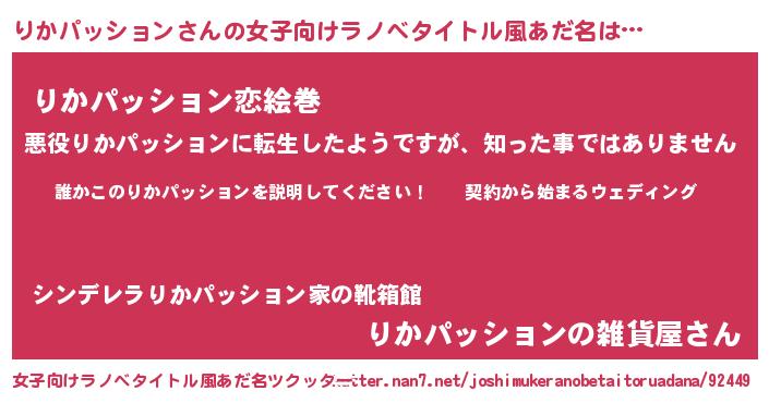 | 胡散臭い通販商品みたいなあだ名 | 『億万長者になれる水晶球…その名も「りかパッション」』 |