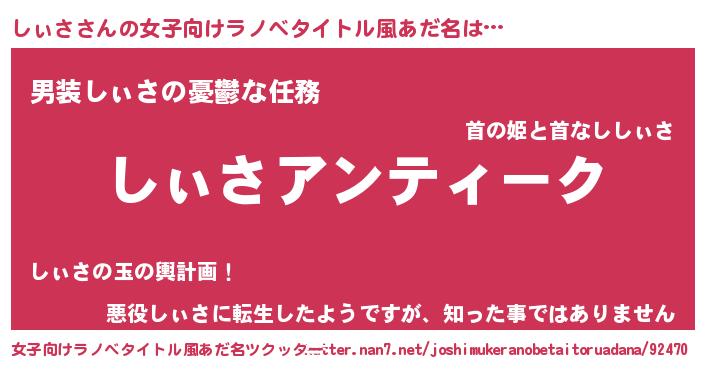 | 男性向けラノベタイトル風あだ名 | 『魔法科高校のしぃさ』 |