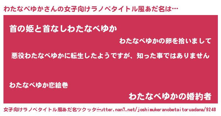 | 男性向けラノベタイトル風あだ名 | 『この素晴らしい世界にわたなべゆかを!』 |