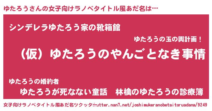 | 男性向けラノベタイトル風あだ名 | 『ゆたろうの憂鬱』『緋弾のユタロウ』 |