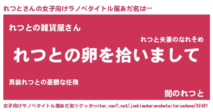 | 男性向けラノベタイトル風あだ名 | 『ダンジョンにれつとを求めるのは間違っているだろうか』 |