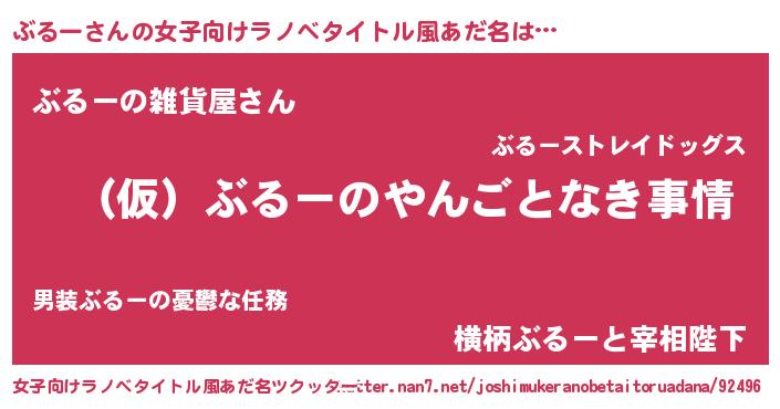 | 男性向けラノベタイトル風あだ名 | 『ぶるーの憂鬱』 |