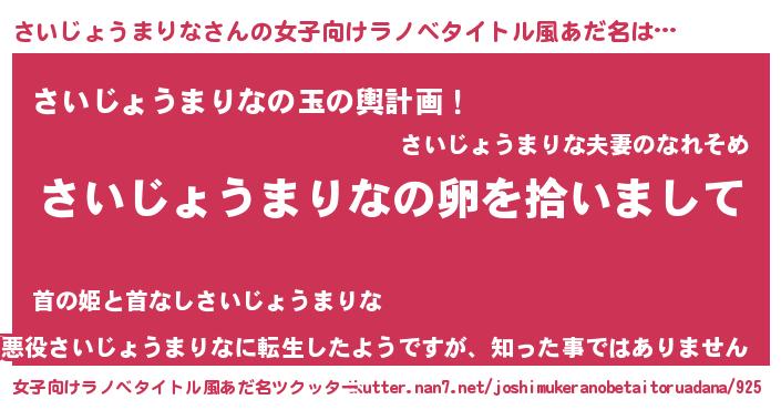 | 胡散臭い通販商品みたいなあだ名 | 『伝統あるサプリメント…その名も「さいじょうまりな」』 |