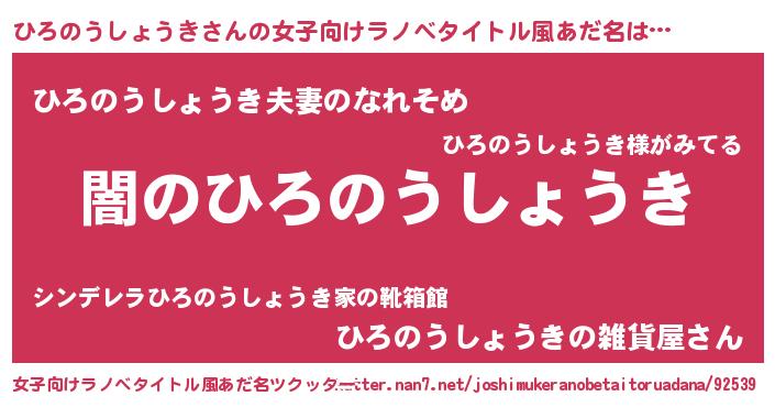 | 意味不明あだ名 | 『自称ひろのうしょうき』 |