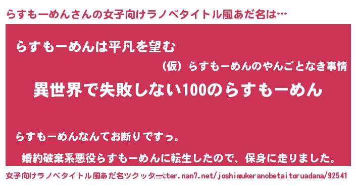| 男性向けラノベタイトル風あだ名 | 『らすもーめんという概念が存在しない退屈な世界 』 |