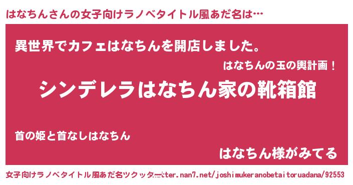 | 男性向けラノベタイトル風あだ名 | 『緋弾のハナチン』 |