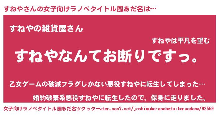 | 男性向けラノベタイトル風あだ名 | 『魔法科高校のすねや』 |