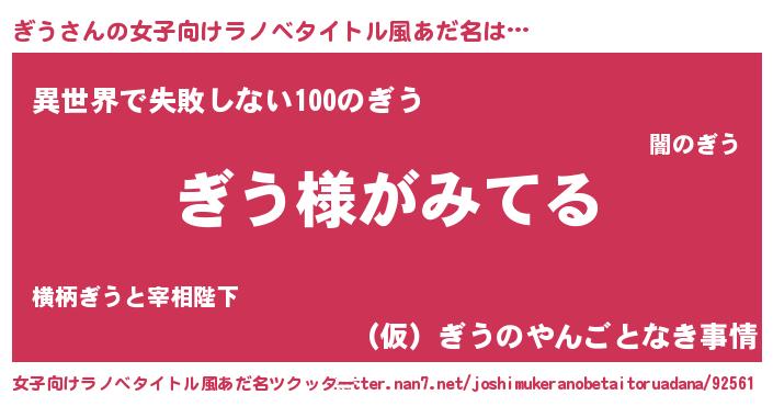 | 男性向けラノベタイトル風あだ名 | 『ぎうの嫁は女の子じゃないと思った?』 |