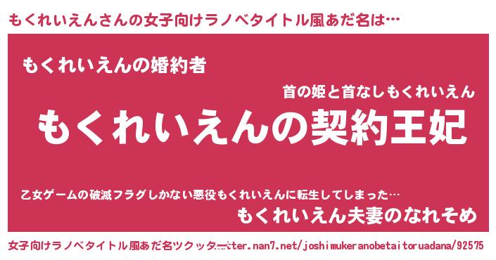 | 胡散臭い通販商品みたいなあだ名 | 『来世でも幸せになれる健康食品…その名も「もくれいえん」』 |