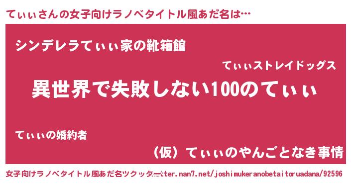 | 男性向けラノベタイトル風あだ名 | 『てぃぃという概念が存在しない退屈な世界 』 |