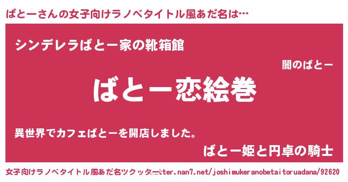 | 男性向けラノベタイトル風あだ名 | 『ノーゲーム・ノーバトー』 |
