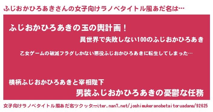 | ヘコむあだ名 | 『ふじおかひろあき(爆)』『ふじにゅー』 |