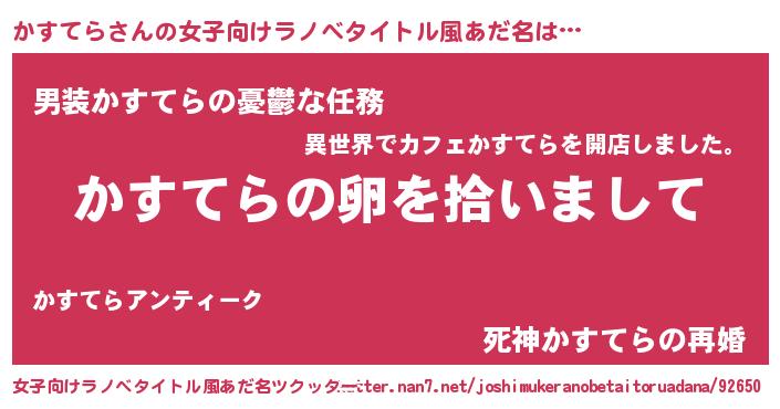 | 男性向けラノベタイトル風あだ名 | 『ダンジョンにかすてらを求めるのは間違っているだろうか』 |