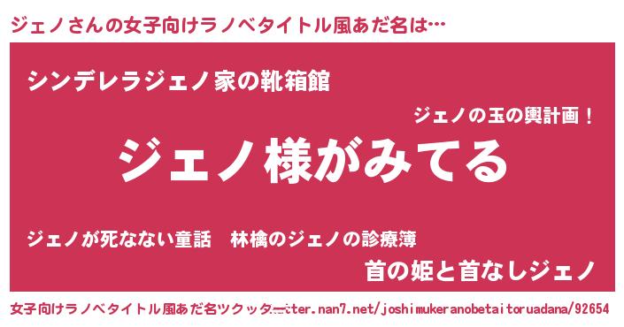 | 男性向けラノベタイトル風あだ名 | 『ジェノの嫁は女の子じゃないと思った?』 |