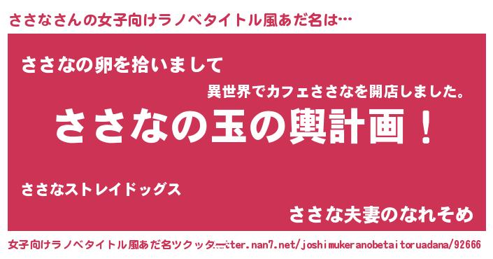 | ヒーロー風カッコイイあだ名 | 『幻影騎士ササ』『正義の使者ささな』 |