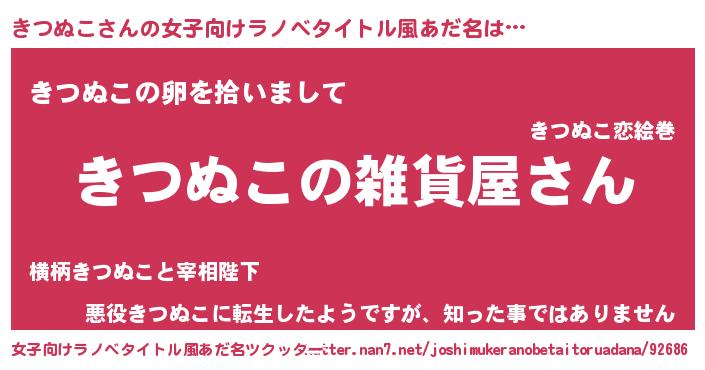 | 男性向けラノベタイトル風あだ名 | 『やはりきつぬこの青春ラブコメはまちがっている 』 |