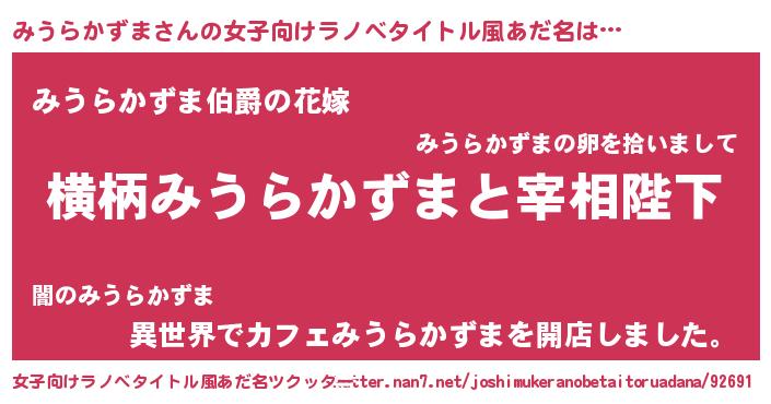 | 男性向けラノベタイトル風あだ名 | 『みうらかずまに滅ぼされるだけの簡単なお仕事です』 |